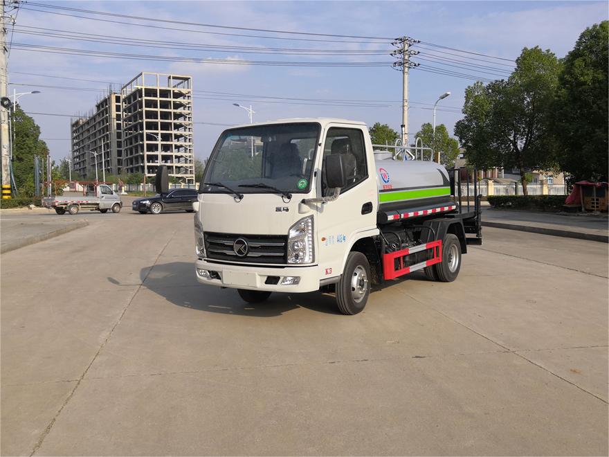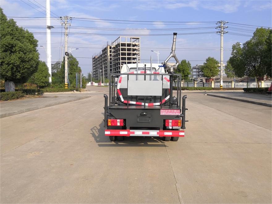 灑水車前裝有鴨形噴嘴或圓頭沖嘴,后面裝有圓柱開灑水噴嘴或蓮蓬頭噴嘴,后部有一工作平臺,裝配有水炮。后部還可裝8個噴嘴(選裝)。