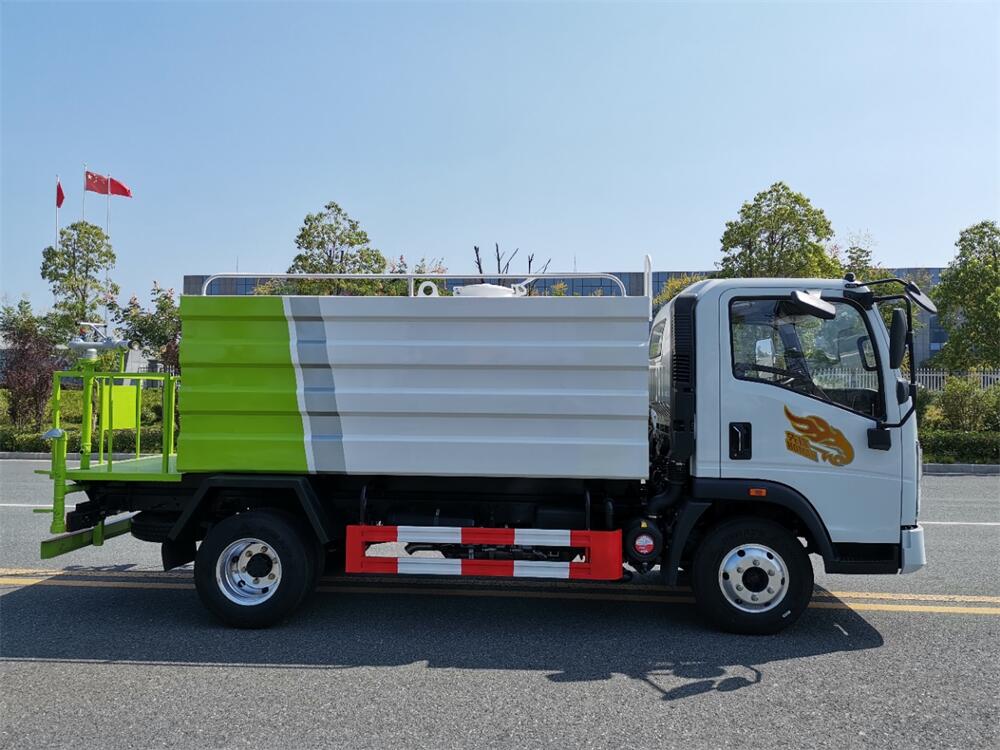 灑水車前裝有鴨形噴嘴或圓頭沖嘴,后面裝有圓柱開灑水噴嘴或蓮蓬頭噴嘴,后部有一工作平臺,裝配有水炮。后部還可裝8個噴嘴(選裝)。