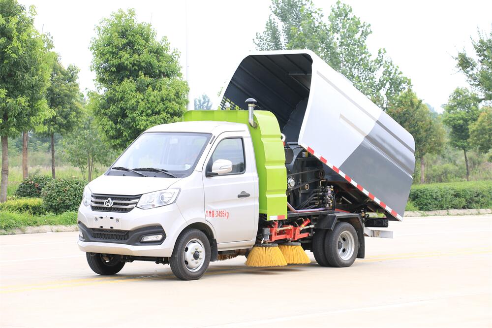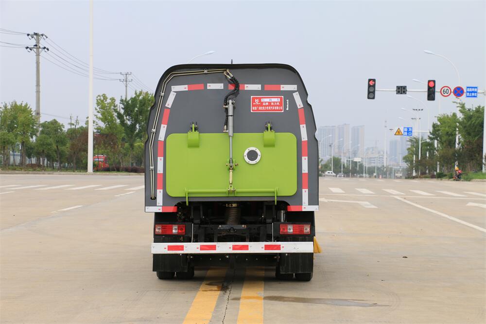 1.采用吸掃混合的方式收集垃圾,濕式除塵、電液,液壓傾翻卸料的作業方式對路面進行清掃作業。