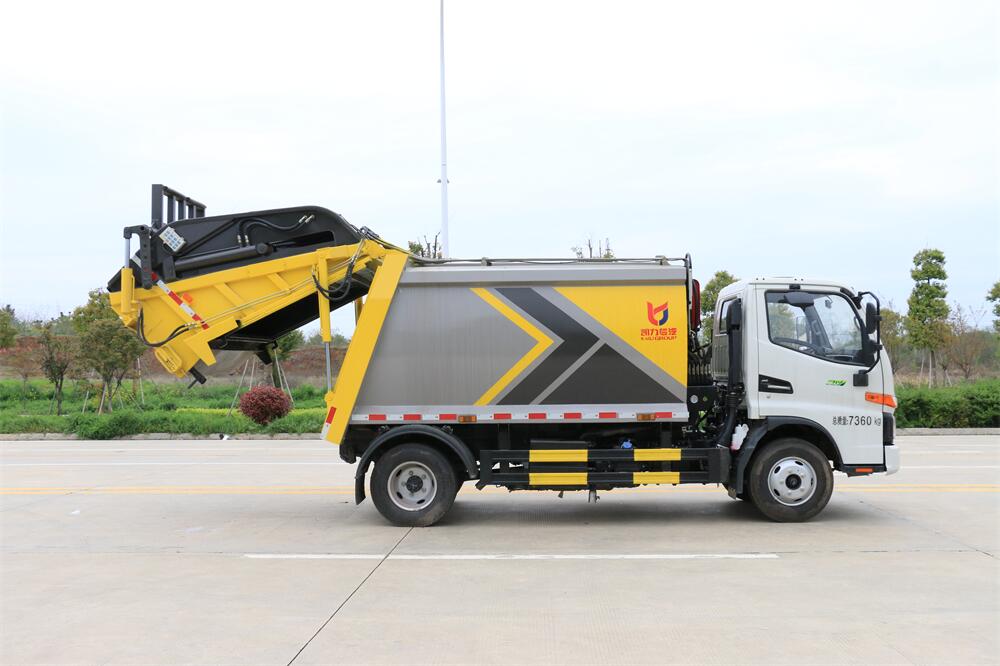 上裝配置:垃圾箱容積:6方,新款平面弧形廂體,廂體材料為武鋼優(yōu)質(zhì)碳鋼,PLC一鍵操作**,手電一體操作模式,兩側(cè)雙電控,帶駕駛室內(nèi)操作,底板支撐加強,雙向壓縮,開放式易清潔污水箱。壓縮式垃圾車采用機電液一體化技術(shù),借助機、電、液聯(lián)合自動**系統(tǒng)、電腦**、手動操作系統(tǒng),通過填裝器和推鏟等專用裝置,實現(xiàn)垃圾倒入、壓碎或壓扁、強力裝填,把垃圾擠入車廂并壓實和推卸,污水全部進入污水廂,解決了垃圾運輸過程中的二次污染的問題。壓縮式垃圾車具有自動反復壓縮以及蠕動壓縮功能,壓縮比高、密封性好、裝載量大﹑操作方便、環(huán)保性好﹑整車利用功率高等優(yōu)點。作業(yè)自動化,垃圾收集方式簡便、高效。后翻轉(zhuǎn)機構(gòu)選裝:1、掛塑料桶式翻轉(zhuǎn)機構(gòu);2、掛鐵桶式翻轉(zhuǎn)機構(gòu);3、擺臂式翻轉(zhuǎn)機構(gòu); 4、簸箕斗式翻轉(zhuǎn)機構(gòu)。
