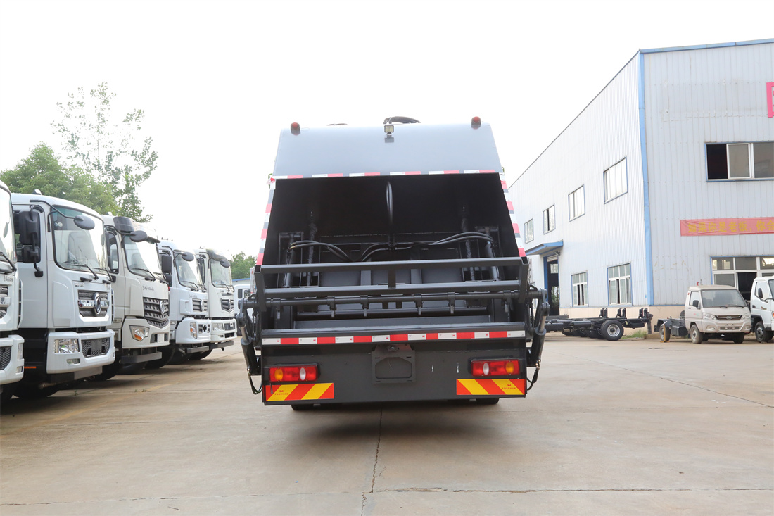 上裝配置:垃圾箱容積:18,20方選擇,新款平面弧形廂體,廂體材料為武鋼優(yōu)質(zhì)碳鋼,PLC一鍵操作**,手電一體操作模式,兩側(cè)雙電控,帶駕駛室內(nèi)操作,底板支撐加強(qiáng),雙向壓縮,開(kāi)放式易清潔污水箱。壓縮式垃圾車(chē)采用機(jī)電液一體化技術(shù),借助機(jī)、電、液聯(lián)合自動(dòng)**系統(tǒng)、電腦**、手動(dòng)操作系統(tǒng),通過(guò)填裝器和推鏟等專(zhuān)用裝置,實(shí)現(xiàn)垃圾倒入、壓碎或壓扁、強(qiáng)力裝填,把垃圾擠入車(chē)廂并壓實(shí)和推卸,污水全部進(jìn)入污水廂,解決了垃圾運(yùn)輸過(guò)程中的二次污染的問(wèn)題。壓縮式垃圾車(chē)具有自動(dòng)反復(fù)壓縮以及蠕動(dòng)壓縮功能,壓縮比高、密封性好、裝載量大﹑操作方便、環(huán)保性好﹑整車(chē)?yán)霉β矢叩葍?yōu)點(diǎn)。作業(yè)自動(dòng)化,垃圾收集方式簡(jiǎn)便、高效。后翻轉(zhuǎn)機(jī)構(gòu)選裝:1、掛塑料桶式翻轉(zhuǎn)機(jī)構(gòu);2、掛鐵桶式翻轉(zhuǎn)機(jī)構(gòu);3、擺臂式翻轉(zhuǎn)機(jī)構(gòu); 4、簸箕斗式翻轉(zhuǎn)機(jī)構(gòu)。