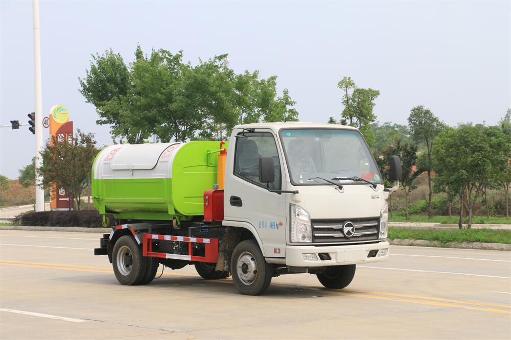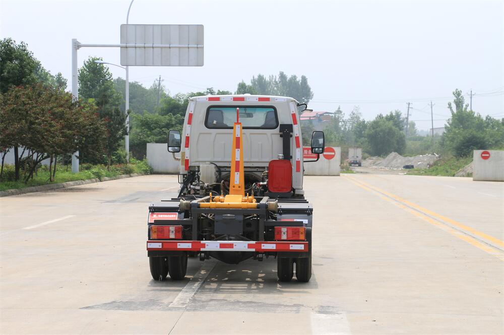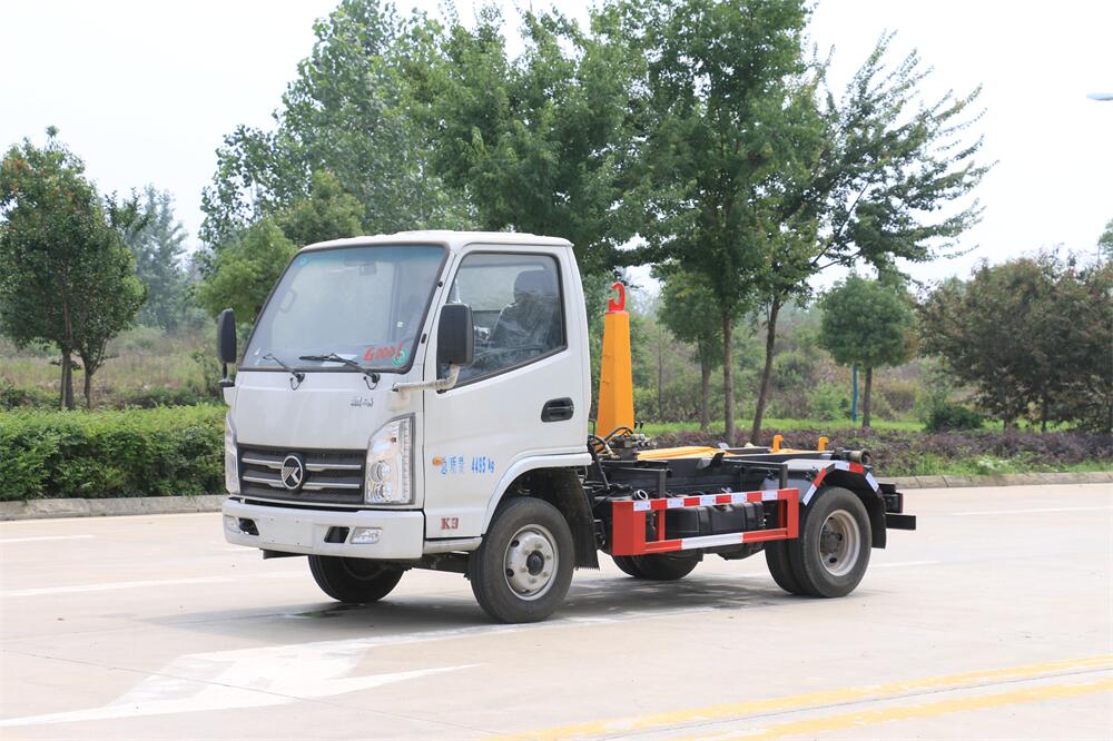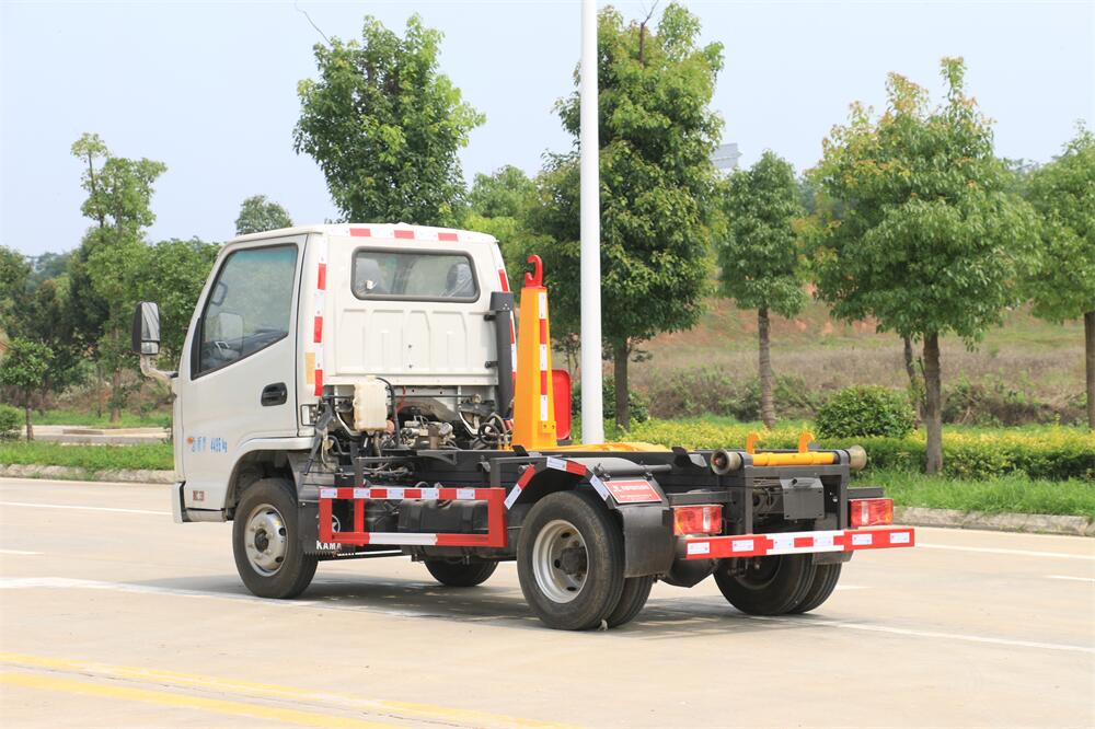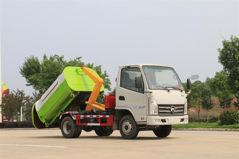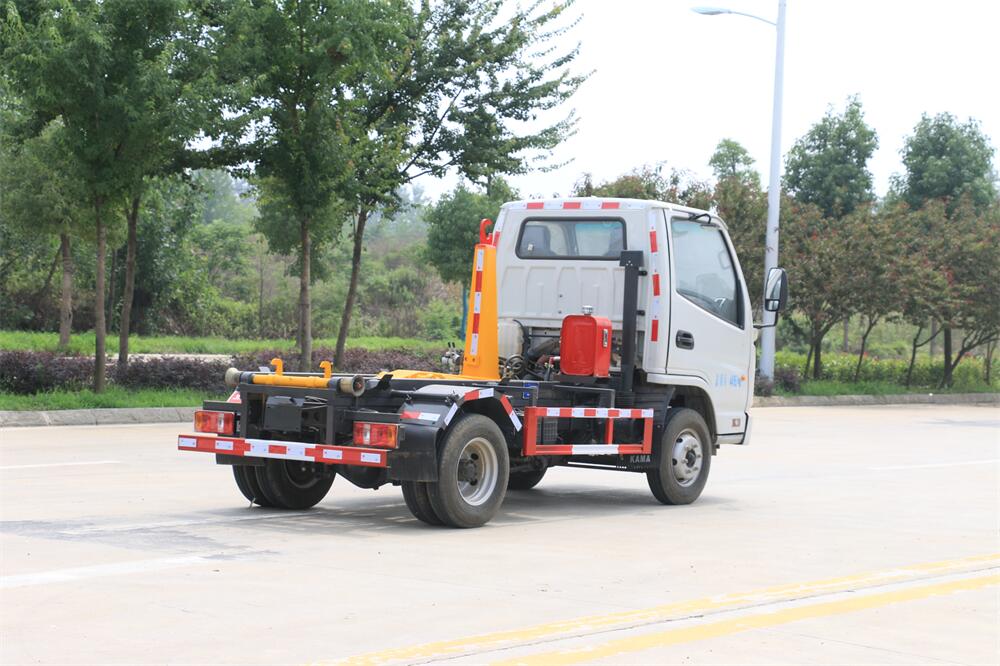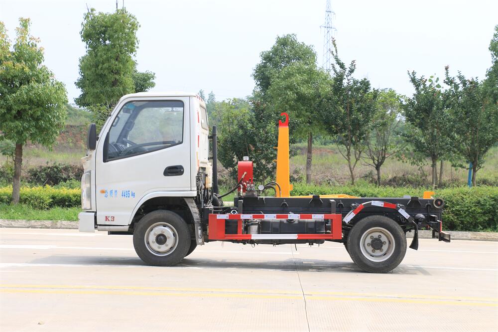 勾臂式垃圾車(車廂可卸式垃圾車)介紹: 車廂可卸式垃圾車又叫拉臂式垃圾車,是一種采用高新設計可伸縮的鉤臂,實現垃圾廂的二次吊裝,自吊上放下,可自行傾倒垃圾的環衛設備。 拉臂式垃圾車結構簡單,操作穩定方便,裝卸效率高,機械化程度高,節省人力。鉤臂垃圾車一車可帶多個垃圾廂,在裝卸的運輸過程中可有效地避免二次污染。 拉臂垃圾車采用高新設計可擺動的鉤臂,垃圾箱由框架、開啟油缸、滑輪、后門和若干加強框架與鋼板焊接而成。調換貨廂快捷方便,貨廂上帶蓋(倒垃圾時可翻開),鉤臂垃圾車垃圾廂體可選用碳鋼、不銹鋼材質、內部采取環氧樹脂防腐處理,改裝部分與原車底盤為可分離式,維修方便且保持了原車的機動性及行駛性能。