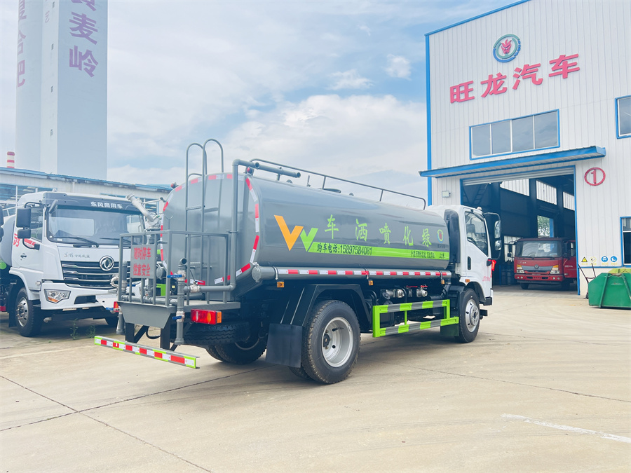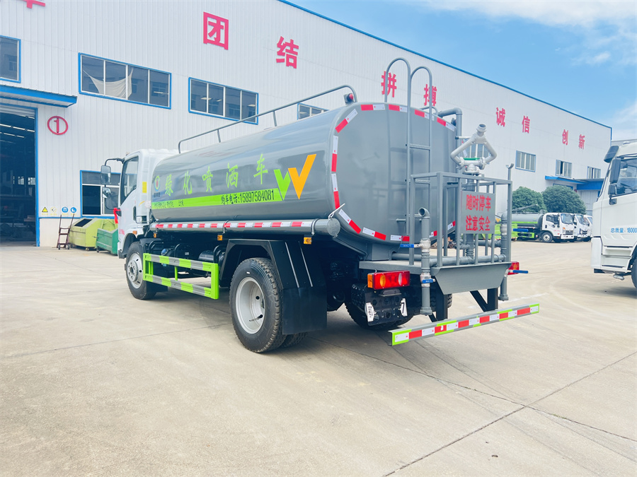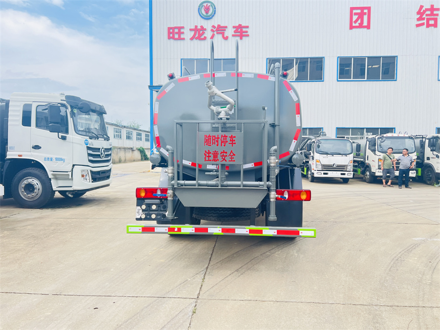 灑水車前裝有鴨形噴嘴或圓頭沖嘴,后面裝有圓柱開灑水噴嘴或蓮蓬頭噴嘴,后部有一工作平臺(tái),裝配有水炮。后部還可裝8個(gè)噴嘴(選裝)。