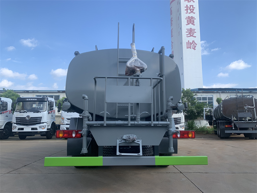 灑水車前裝有鴨形噴嘴或圓頭沖嘴,后面裝有圓柱開灑水噴嘴或蓮蓬頭噴嘴,后部有一工作平臺,裝配有水炮。后部還可裝8個噴嘴(選裝)。