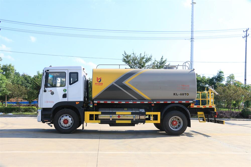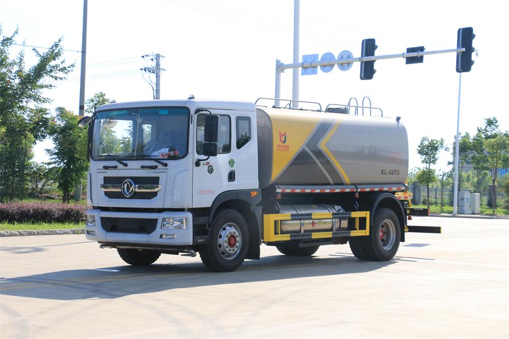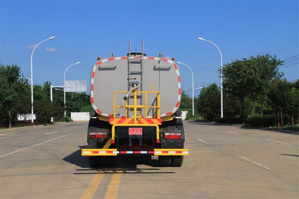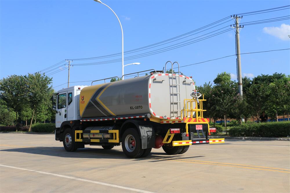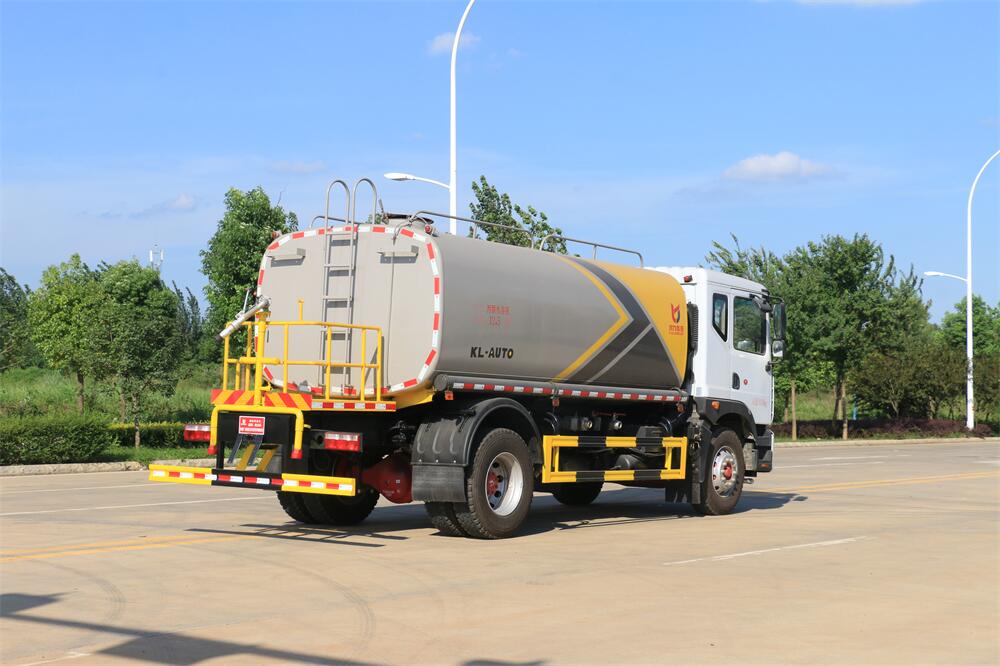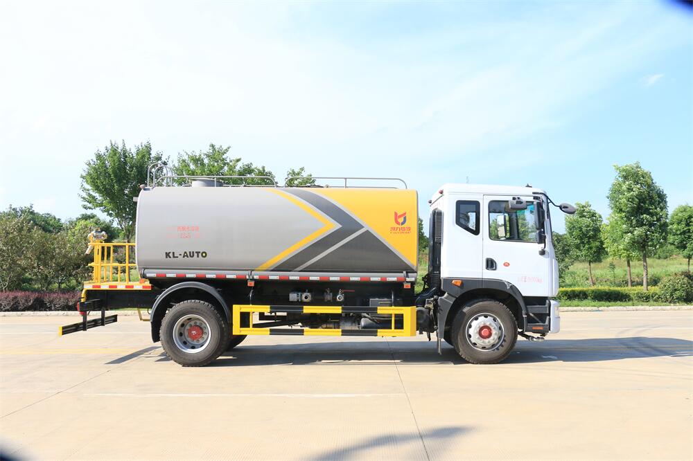 灑水車前裝有鴨形噴嘴或圓頭沖嘴,后面裝有圓柱開灑水噴嘴或蓮蓬頭噴嘴,后部有一工作平臺,裝配有水炮。后部還可裝8個噴嘴(選裝)。