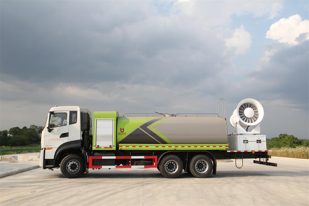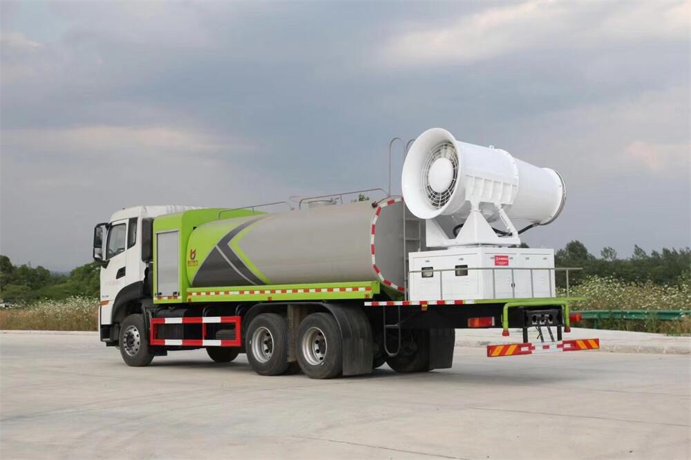 上裝配置:罐體容積為 16立方,選配風(fēng)送式霧炮機(jī)組射程30米、40米、50米、60米、80米、100米、120米霧炮,罐體鋼板為4mm碳鋼Q235材質(zhì),罐內(nèi)隔板具有防波作用,以減輕汽車行駛時(shí)罐體液體沖擊,罐體及整車外形尺寸按照公告。帶大功率專用灑水泵,泵可自吸自排,整車前沖、后灑、側(cè)噴、帶65消防接口,后平臺(tái)配CLW-50、CLW-60、CLW-80、CLW-100、CLW-120型風(fēng)送式霧炮機(jī)組;罐體前封頭配大功率柴油發(fā)電機(jī)組;前封頭帶水位計(jì),后平臺(tái)主管路帶1寸澆花接口,后爬梯。帶兩根輸水管及陰陽(yáng)端。罐體顏色:銀/灰/綠,罐體兩側(cè)噴“多功能抑塵車”字樣,貼反光標(biāo)示。