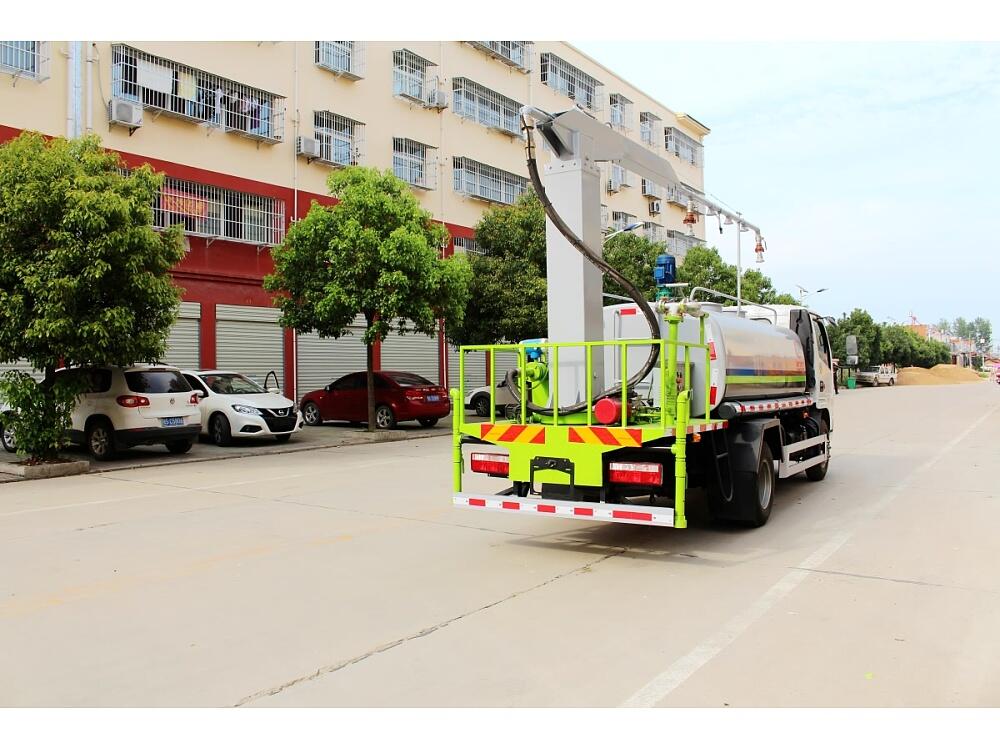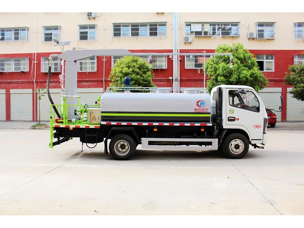 東風小多利卡抑塵固化劑噴灑車上裝配置:罐體為5立方圓形罐,罐體內部做防腐,帶加熱功能,前沖、后灑、側噴、高炮,抑塵噴灑桿(帶旋轉伸縮功能)。東風小多利卡抑塵固化劑噴灑車噴灑桿離地3.5-5米 ,后部平臺帶8KW副發電機組,罐體內部加兩個1.5KW電動馬達(帶攪拌功能)罐體噴漆上白下藍,平臺和噴灑桿藍色。遙控操作噴灑桿上下左右旋轉,國內知名品牌回轉支撐,大品牌油缸。