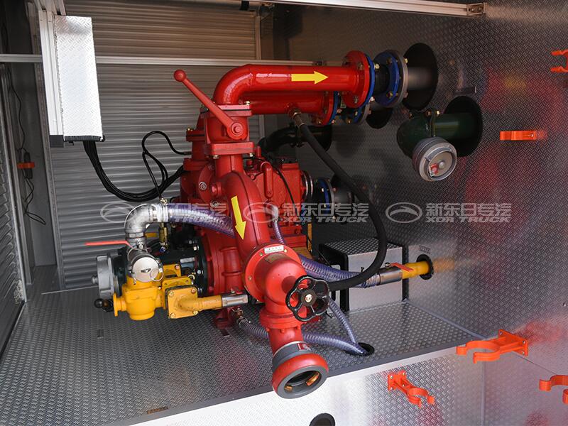 東風多利卡泡沫消防車是由二類汽車底盤、罐體、水泵、管路、儀表電路系統等部件組成,該車裝配鋁合金后爬梯(可拆卸),泵房在整車尾部,罐體為鋼板焊接式,水罐材質為優質碳鋼板,罐體內部做防腐處理,載水3.0方,泡沫罐材質為優質不銹鋼板,載泡沫液1.0方。該車裝備的CB10/30消防泵,PL8/24兩用消防炮。