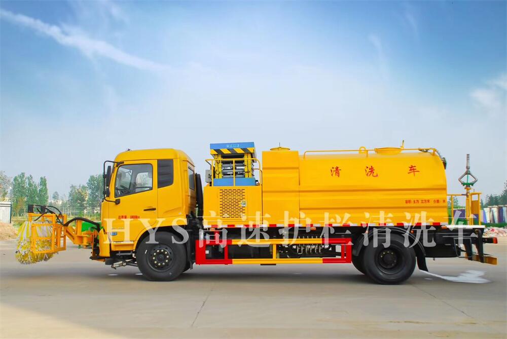 是清洗城市及高速護欄的專用車輛。城市道路護欄清洗車用機械作業取代人工作業,速度,潔凈度有優勢,大大減輕環衛工人的勞動強度,提高清洗效率,使得點線道路養護變為立體養護,使得的整個道路養護沒有遺漏。
