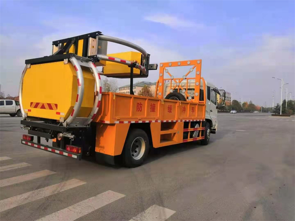 防撞緩沖車主要用于高速公路施工,隧道施工,公路施工等工程時,**大限度的降低了施工車輛、養護人員和事故處理的交**的安全風險問題。該車專用裝置為導向架和防撞緩沖墊等組成,可在臨時性車道封閉的路段給養路工人及設備提供全面的被動安裝防護:通過防撞包的變形均勻逐漸的緩消碰撞的動能,對施工人員及設備進行有效的保護,同時**大限度地保護撞擊車輛內人員的安全。