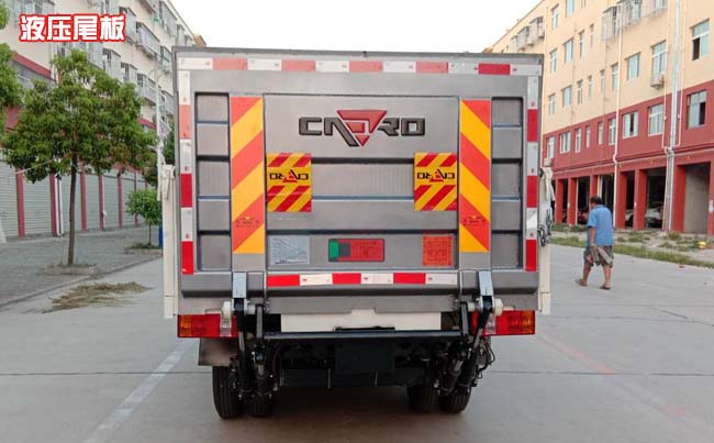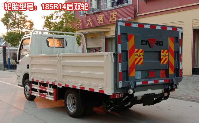 此款車型貨箱尺寸:3400×1770×600(mm),裝配液壓尾板,可裝15個240L型號的垃圾桶,可選裝垃圾桶定位桿,可防止行駛過程中垃圾桶滑動,兩側可選翻側欄板。